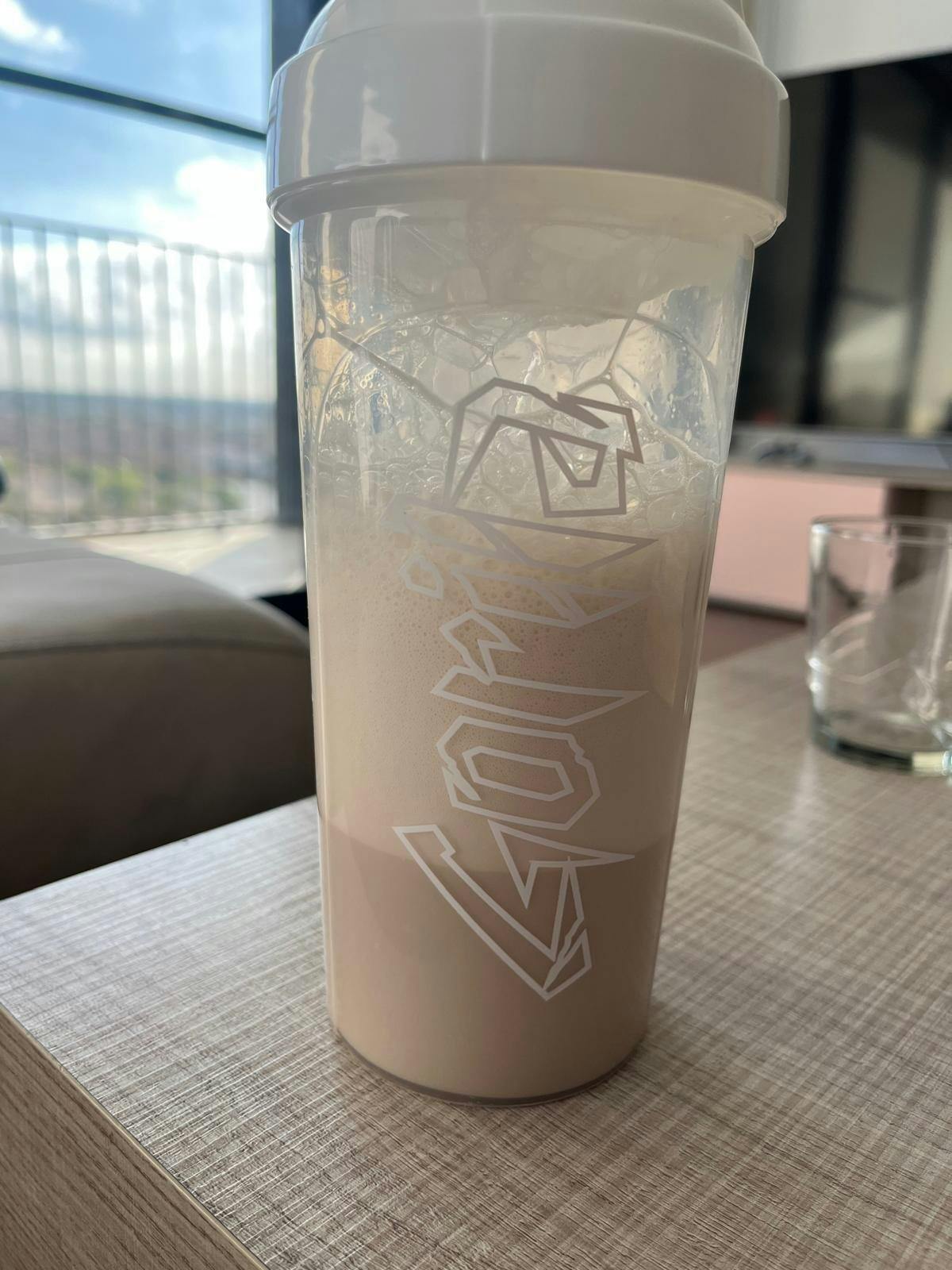 PASO 1: Llena tu shaker con 250ml de leche fría o caliente.